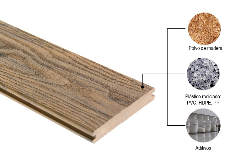 Properties: wood-like texture, anti-slip, waterproof, UV-resistant, fire-retardant, eco-friendly, low-maintenance